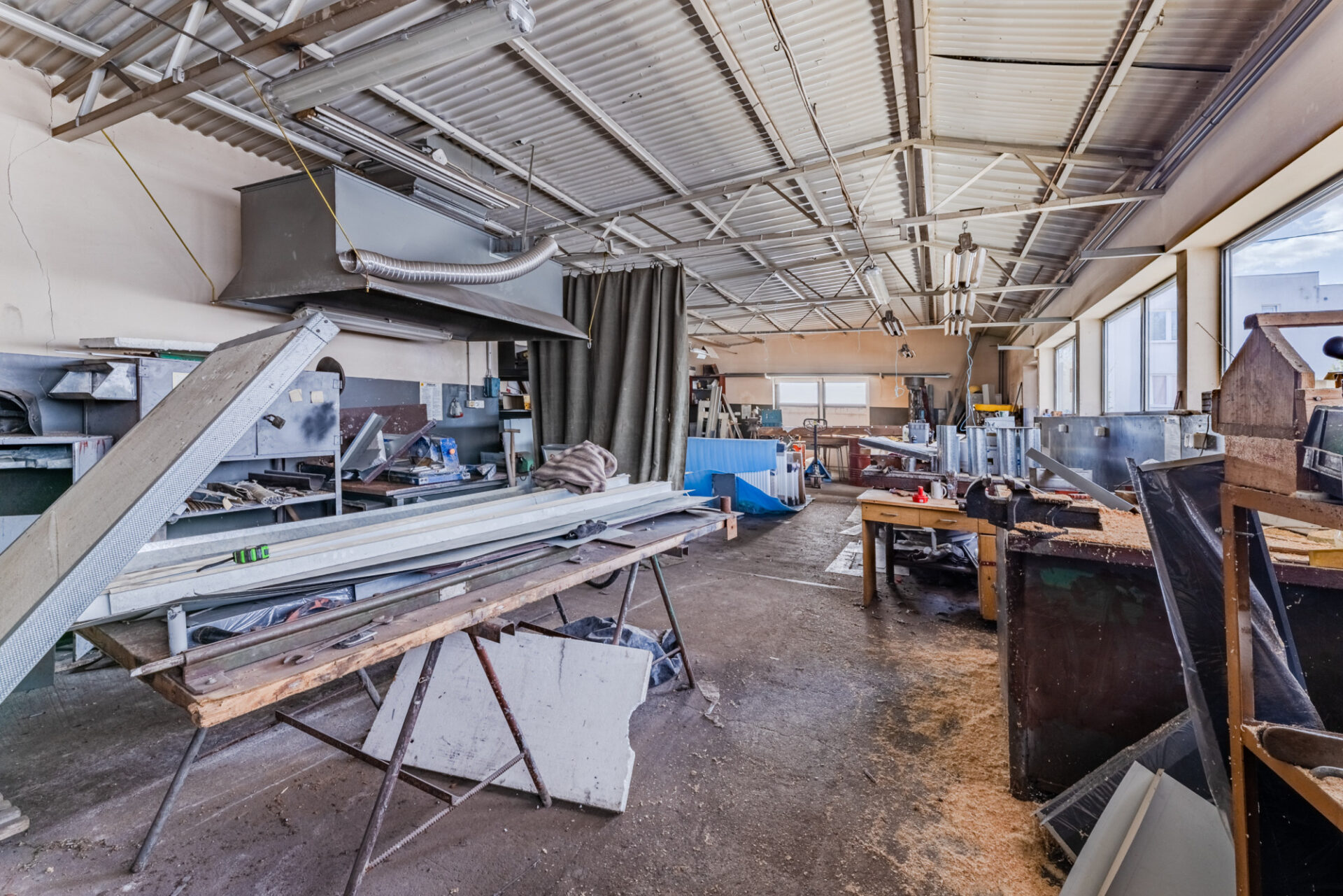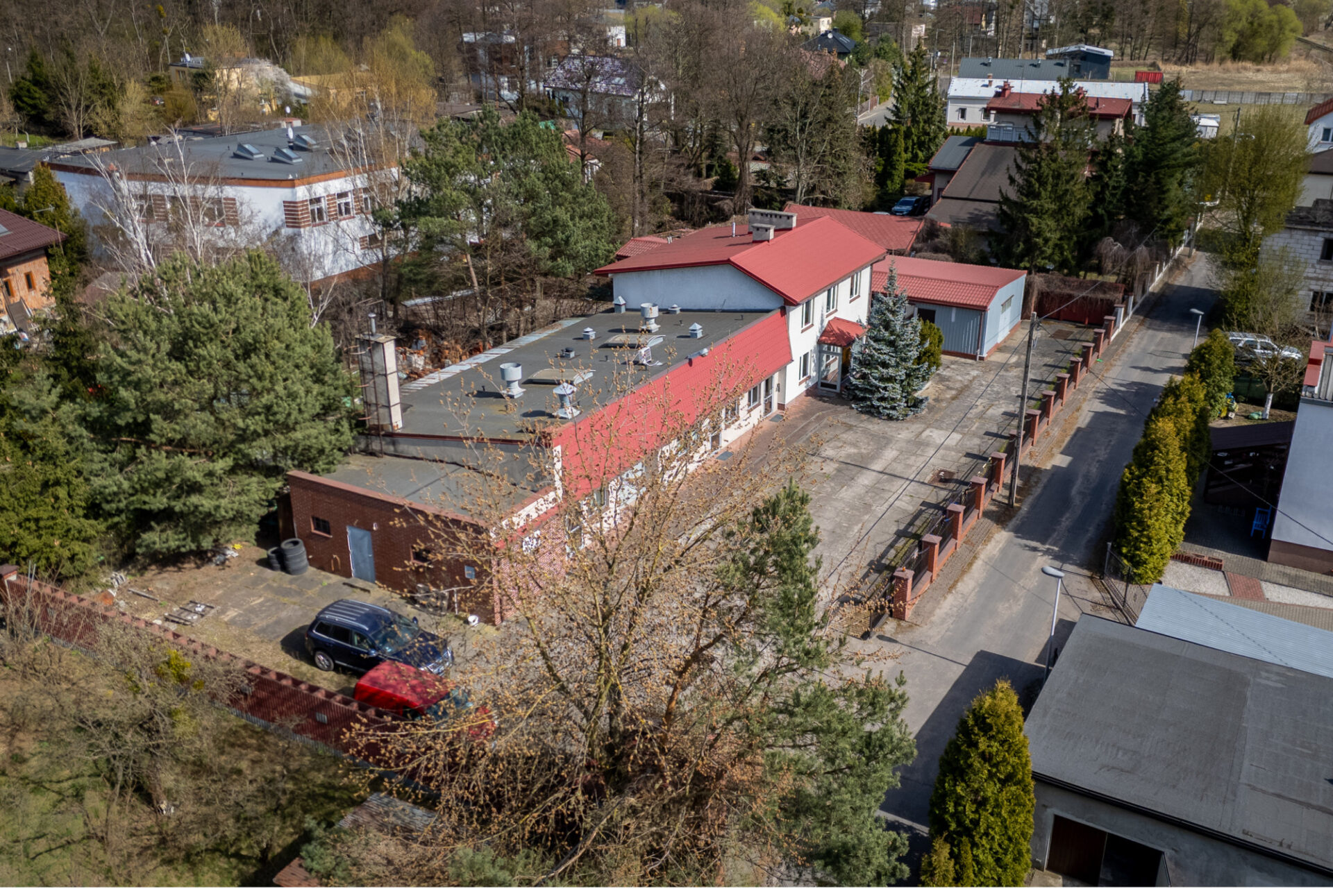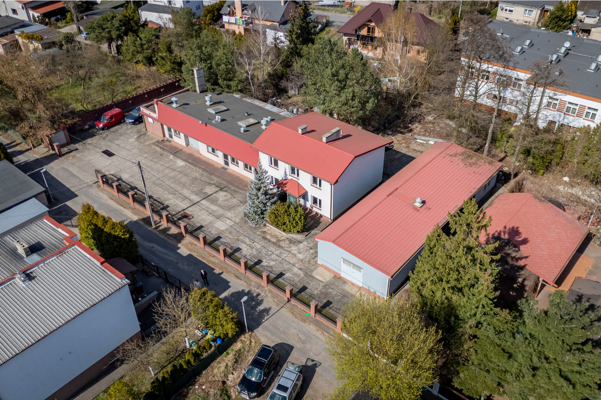 Nieruchomość wybudowana w 1985 roku z gazobetonu. Pierwotnie część biurowo-socjalna stanowiła budynek jednokondygnacyjny, natomiast w 2000 roku została rozbudowana o dodatkowe piętro. Dostęp do tej części zapewniają dwa niezależne wejścia. Ogrzewanie za pomocą pieca olejowego. Dach kryty blachą falistą, ocynkowaną. W budynku zamontowana jest wentylacja mechaniczna i grawitacyjna. Dodatkowo na posesji znajduje się hala magazynowa o konstrukcji szkieletowej i ścianach z blachy falistej o powierzchni użytkowej 123,1 m2, w której znajdują się maszyny wykorzystywane do prac stolarskich i blacharskich. Dostępne media: prąd, woda, kanalizacja z osadnikiem ścieków, telefon, gaz.