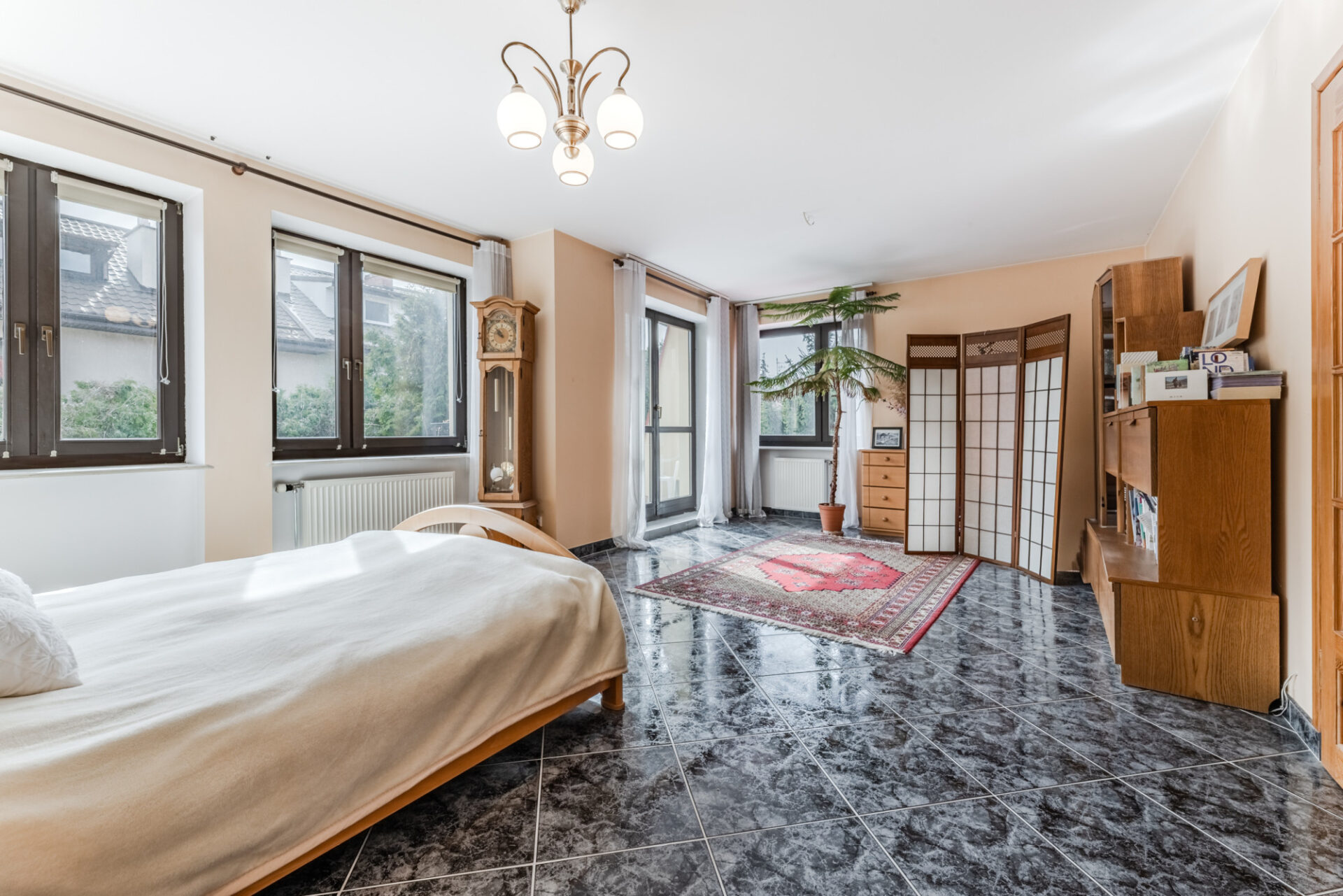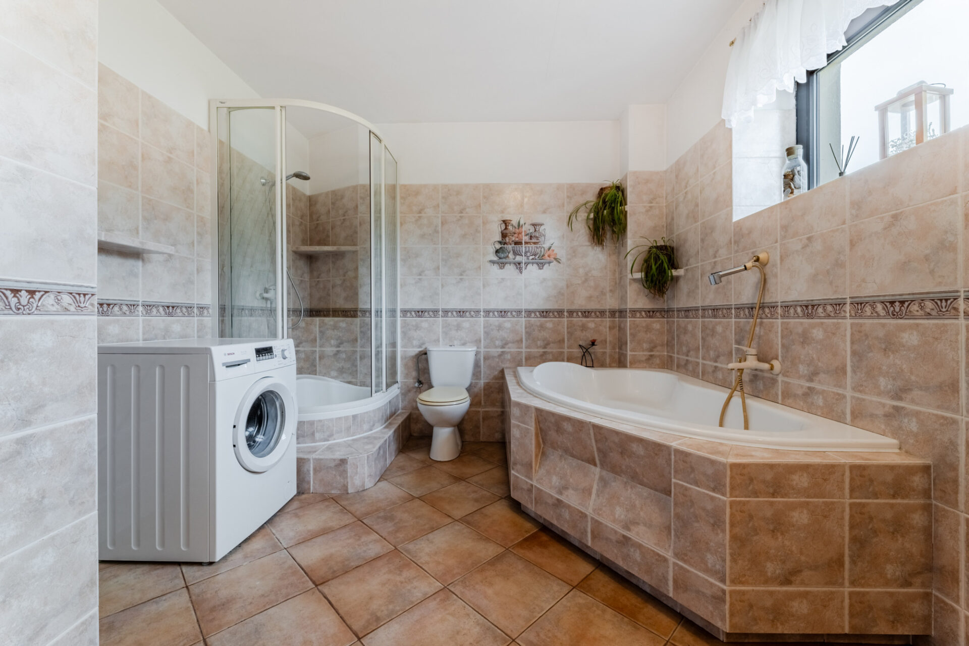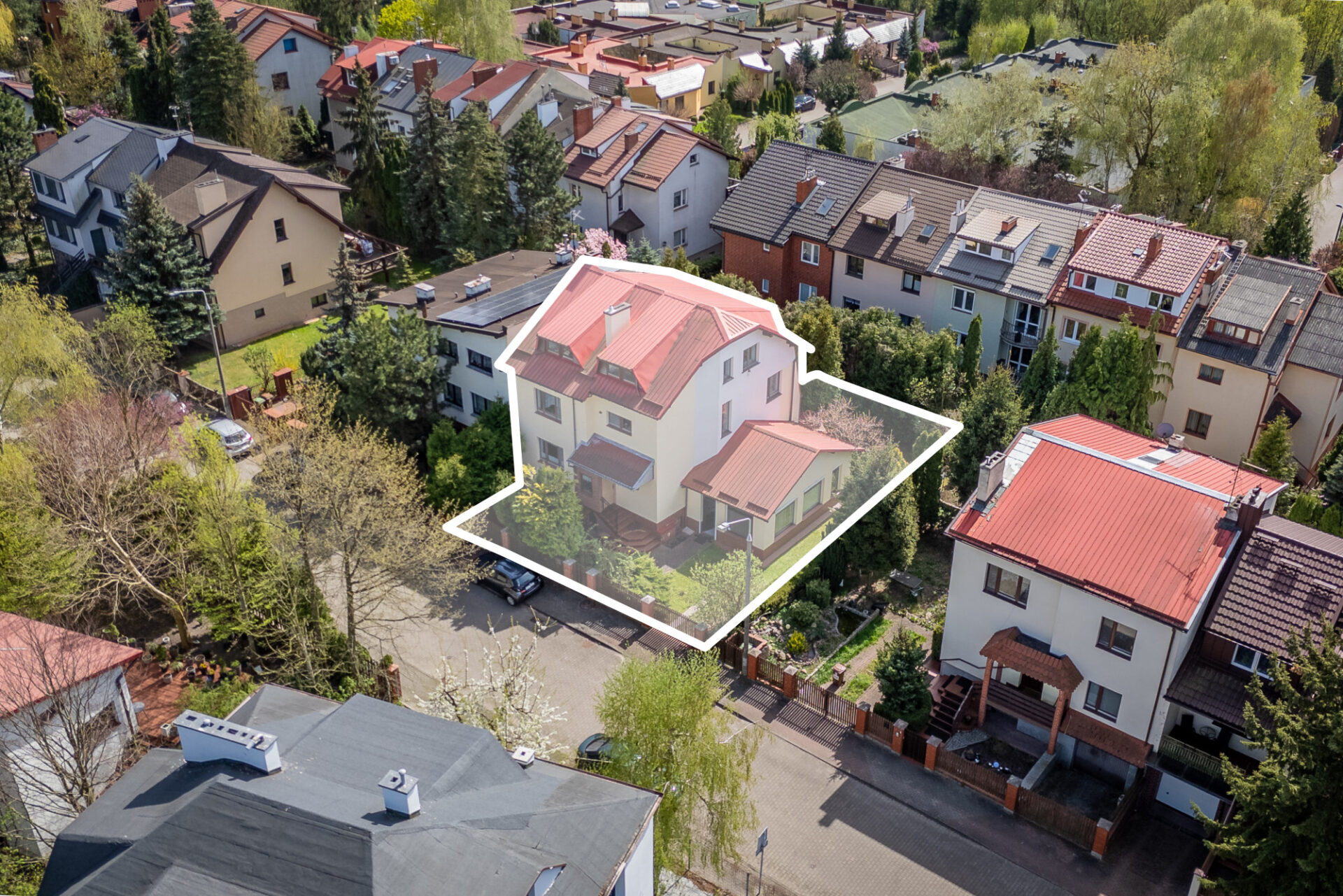 Całkowita powierzchnia domu wynosi 328,8 m2, z czego 233,58 m2 to powierzchnia użytkowa. W skład nieruchomości wchodzą: salon, w którym znajduje się wyjście na taras, kuchnia,sześć pokoi, z czego w jednym z nich znajduje się wyjście na balkon, dwie łazienki, toaleta, korytarz, oraz piwnica. W części podziemnej znajduje się dodatkowa łazienka, pomieszczenia gospodarcze oraz garaż dwustanowiskowy. Z piwnicy można dostać się na ogród oraz do dobudowanego budynku, składającego się z dwóch pomieszczeń. W łazienkach w piwnicy oraz na drugim piętrze jest prysznic, natomiast w łazience na pierwszym piętrze znajduje się zarówno prysznic jak i wanna. Nieruchomość doświetlona od strony południowej, zachodniej oraz północnej. Drzwi antywłamaniowe. Wyposażenie: kuchnia w zabudowie na wymiar, płyta elektryczna, lodówka, okap, piekarnik, pralka, domofon, alarm.