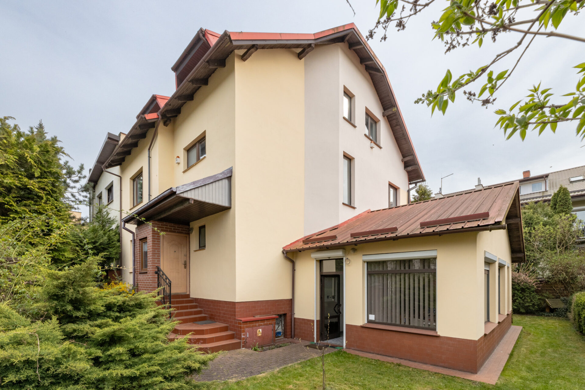 Dom czterokondygnacyjny w zabudowie bliźniaczej, wybudowany z cegły w 1995 roku. Ogrzewany jest piecem gazowym. Okna drewniane. Dostępne media: woda miejska, kanalizacja, prąd, gaz, światłowód. W piwnicy znajduje się garaż dwustanowiskowy z ręcznie otwieranymi drzwiami garażowymi, a wzdłuż ulicy znajdują się miejsca parkingowe. Do budynku dobudowano lokal użytkowy z przeznaczeniem na biuro lub gabinet o powierzchni 23,10 m2.