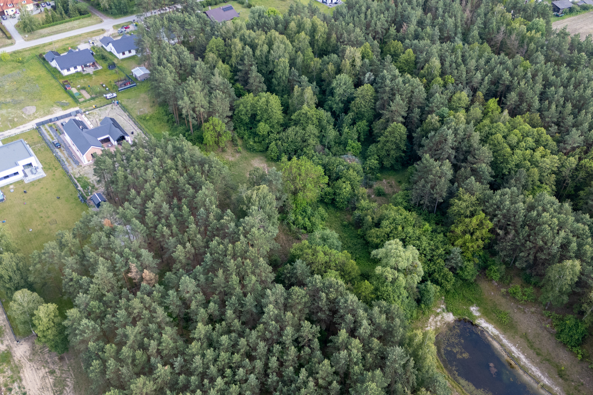 Działka budowlana o powierzchni 9 193 m2 w kształcie prostokąta, częściowo zalesiona. Zapewniony ma dojazd drogą utwardzoną. W pasie drogowym wzdłuż granicy nieruchomości zlokalizowana jest sieć wodociągowa oraz elektroenergetyczna. Nieruchomość gotowa do wydania. Dla działki wydano decyzję o warunkach zabudowy, która pozwala na budowę dwóch budynków mieszkalnych jednorodzinnych. Powierzchnia zabudowy każdego budynku powinna być nie większa niż 300 m2, szerokość elewacji frontowej do 28m. Wysokość nie powinna przekraczać 9 m. Maksymalna liczba kondygnacji – 2 nadziemne. Kąt nachylenia połaci dachowych do 45°. Powierzchnia biologicznie czynna powinna stanowić co najmniej 25% powierzchni terenu.