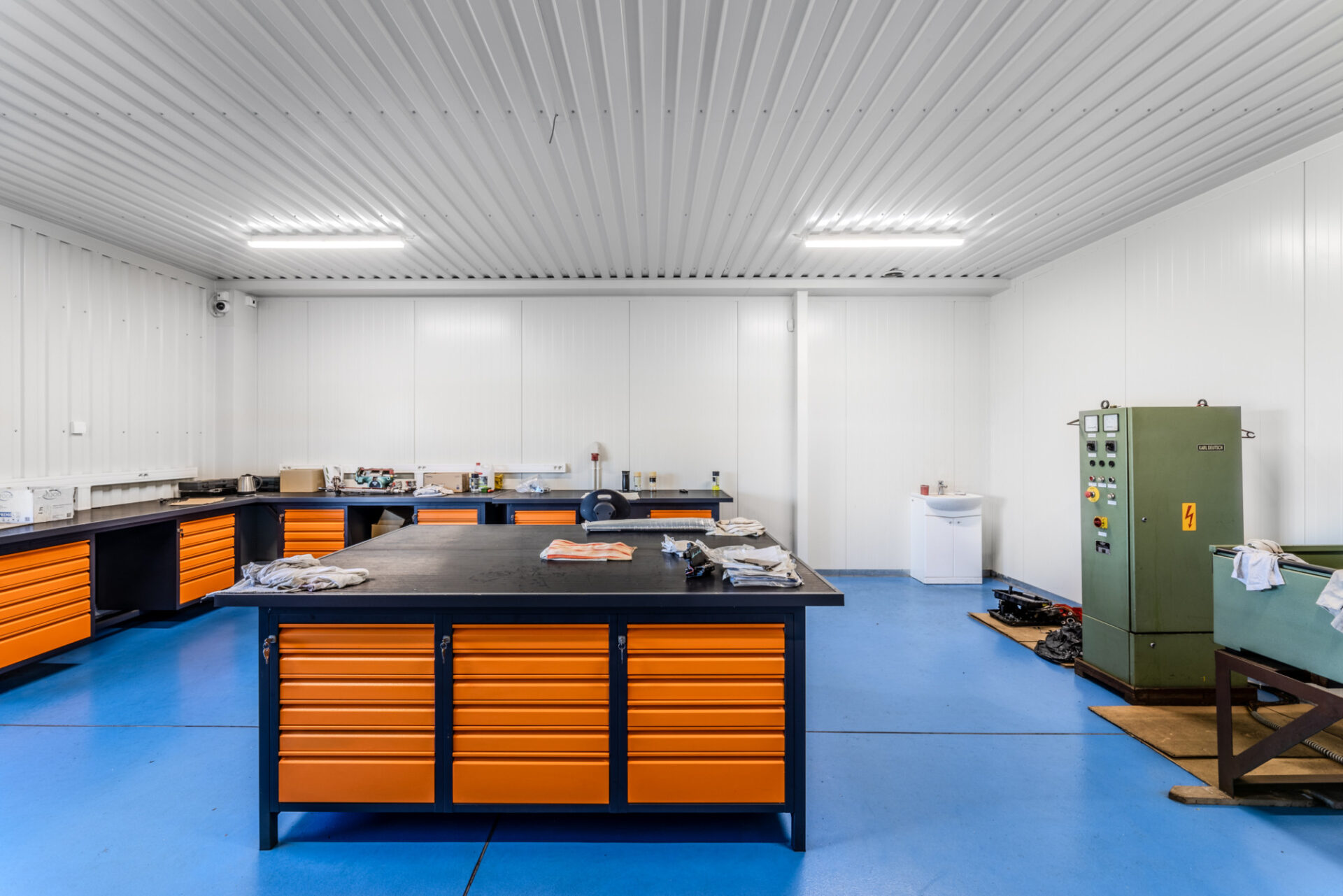 Na działce o powierzchni 21 307 m2 znajduje się budynek o łącznej powierzchni 2631 m2, który składa się z: części biurowej, stacji diagnostycznej oraz hali z antresolą. Budynek socjalno-biurowy ma powierzchnię 660 m2 i składa się z 2 kondygnacji (parter i piętro). Powierzchnia hali wraz z antresolą wynosi 1971 m2, w tym stacja diagnostyczna to 251,7 m2. W skład pomieszczeń socjalno-biurowych, znajdujących się na parterze wchodzą: wiatrołap, hall, biuro, poczekalnia, pomieszczenie techniczne, pomieszczenie gospodarcze, pomieszczenie diagnostyki, pięć toalet, cztery szatnie, dwie umywalnie, natryski i zaplecze socjalne. Na piętrze budynku biurowego znajdują się: gabinet prezesa, sala konferencyjna, cztery biura, sekretariat, kuchnia, serwerownia, archiwum, toaleta, łazienka, szatnia oraz pokój socjalny. Hala składa się z: pomieszczenia kontroli jakości, sprężarkowni, czterech magazynów, pomieszczenia do demontażu i pokoju kierownika. Obiekt jest monitorowany. Na działce, na której wybudowana jest hala, znajdują się 32 miejsca parkingowe dla samochodów osobowych oraz ciężarowych.