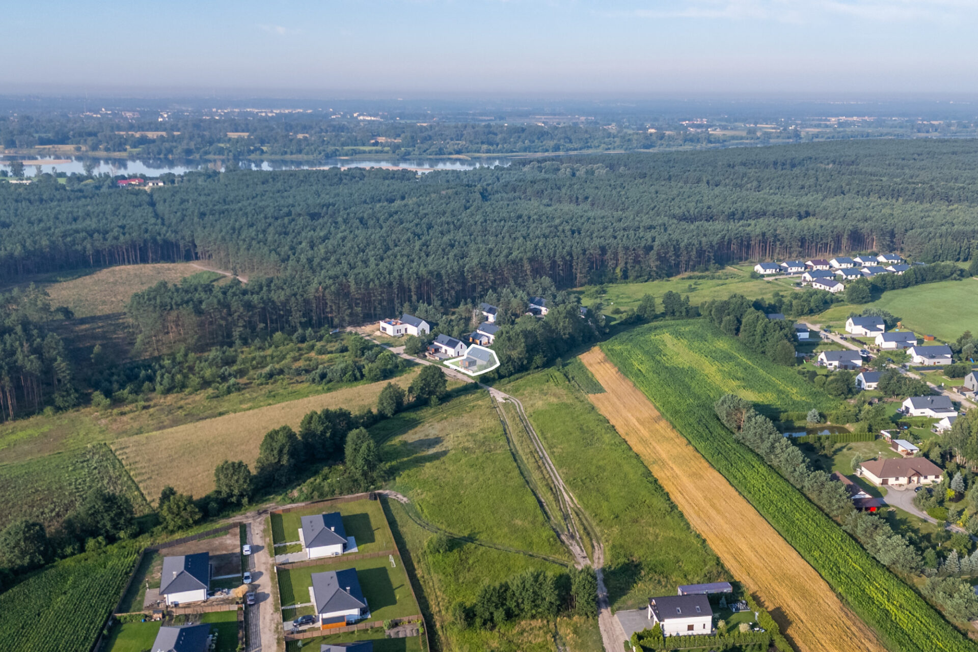 Dom znajduje się w miejscowości Stajenczynki w odległości około 15 kilometrów od granic administracyjnych Torunia. Cicha, spokojna okolica – nieruchomość położona w otoczeniu zieleni, blisko lasu. Niezbędna do codziennego funkcjonowania infrastruktura w pobliżu nieruchomości: bar, Publiczna Szkoła Muzyczna I stopnia im. Katarzyny Cąbrowskiej w Osieku nad Wisłą, Szkoła Podstawowa im. mjr H. Sucharskiego w Osieku Nad Wisłą, przedszkole, apteka, salony fryzjerskie, sklepy spożywcze oraz supermarkety. Zaledwie 1,5 kilometra od działki znajduje się taras widokowy Wisły. W odległości około 4 kilometrów od nieruchomości znajduje się jezioro Osieckie, a kilometr dalej jezioro Dzikowskie.