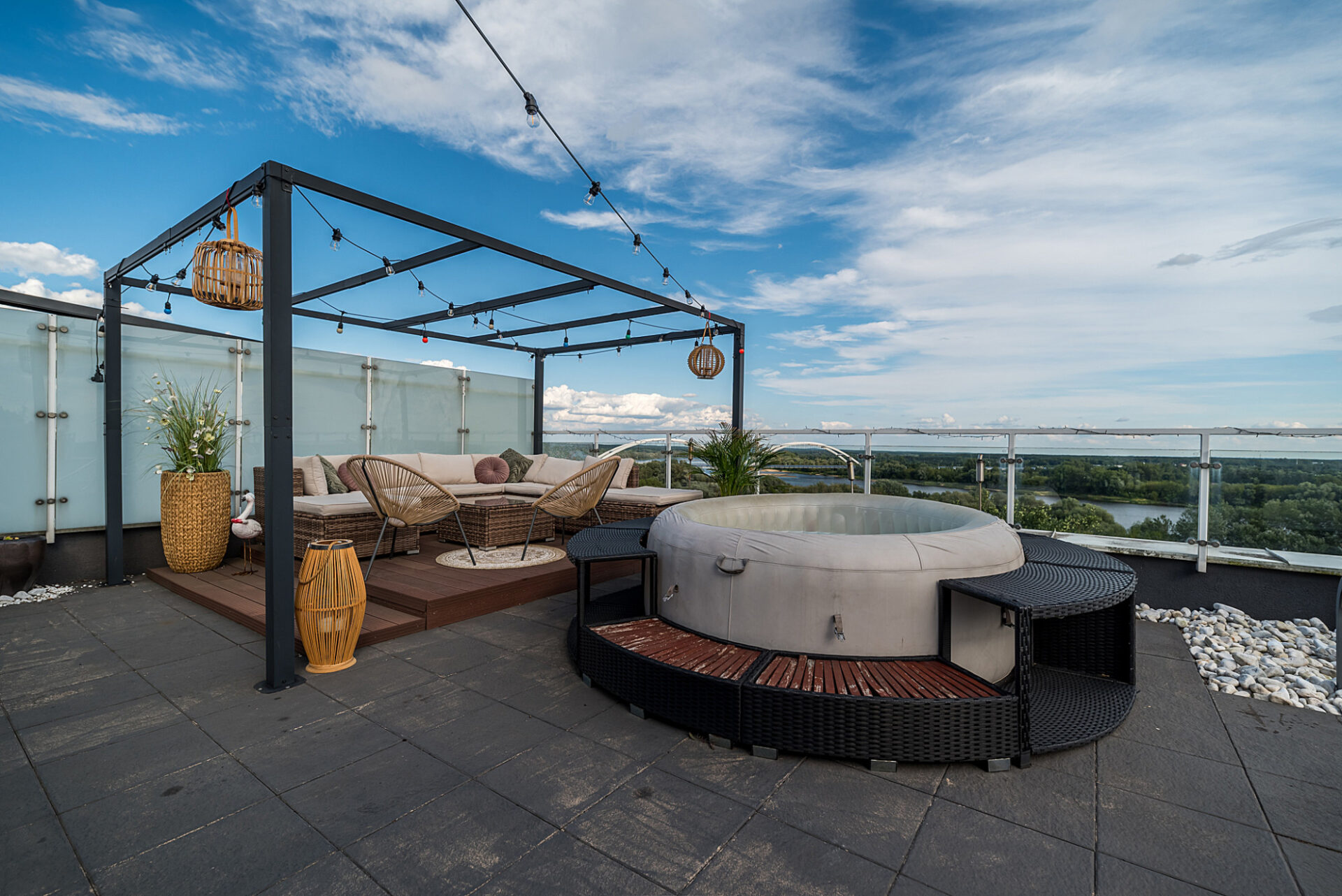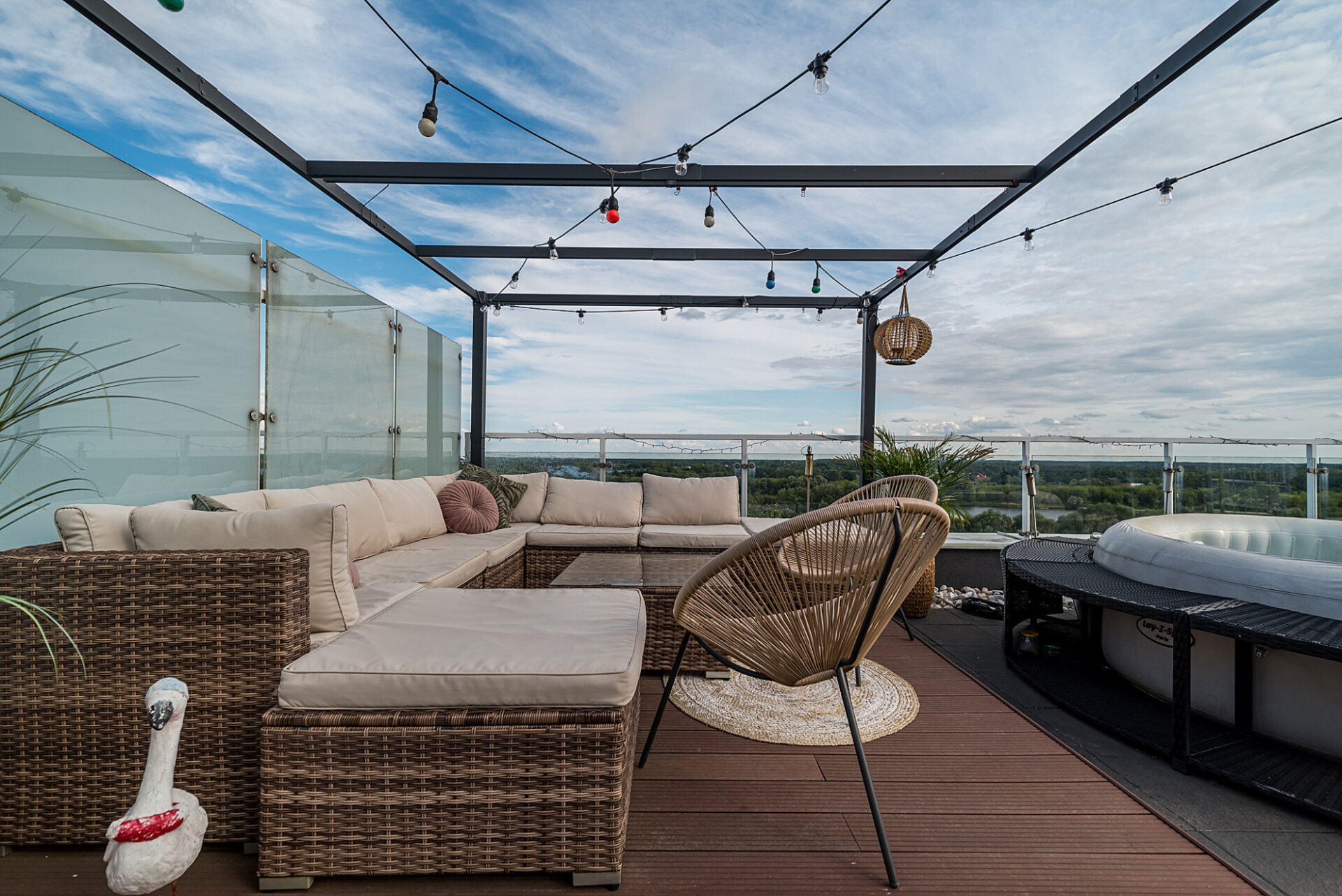 Taras na dachu z widokiem na Wisłę Wysoki standard