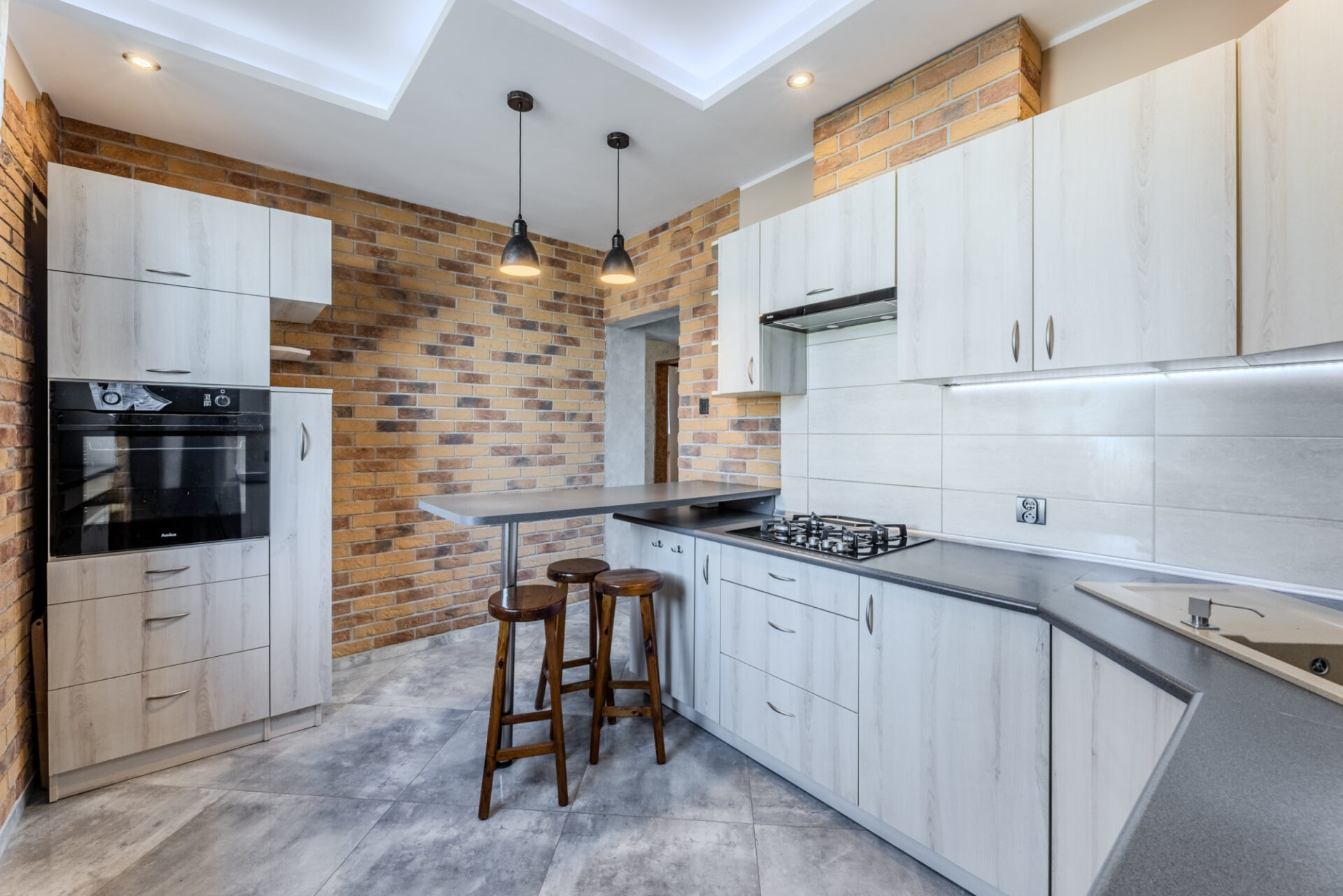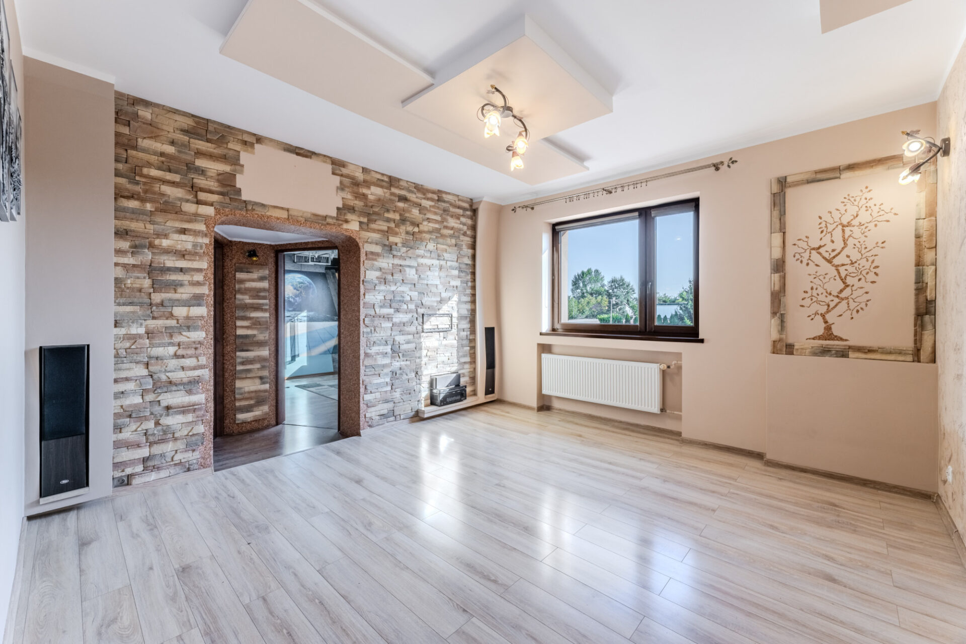 Standard wykończenia: ściany – gładź gipsowa, kamień dekoracyjny, tapeta, boazeria; podłogi – panele, gres, wykładzina; łazienki – gres.