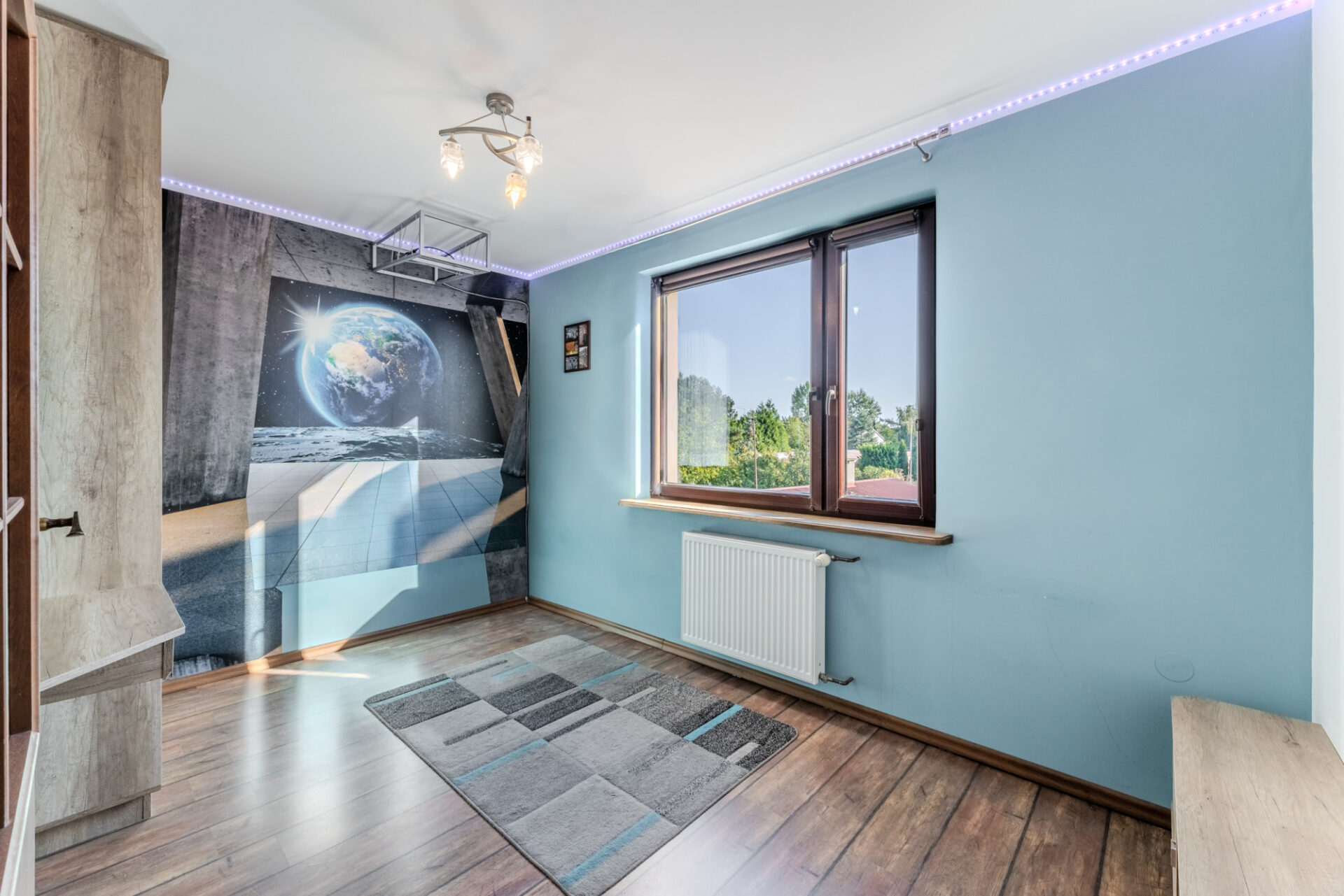 Piętrowy dom wolnostojący o powierzchni użytkowej 167,83 m², z dodatkową powierzchnią 78,65 m² w podpiwniczeniu, usytuowany w dzielnicy Bielawy w Toruniu. Nieruchomość znajduje się w spokojnej okolicy, w otoczeniu zabudowy jednorodzinnej. Dzięki dodatkowej kuchni na piętrze, istnieje możliwość wydzielenia niezależnego mieszkania.