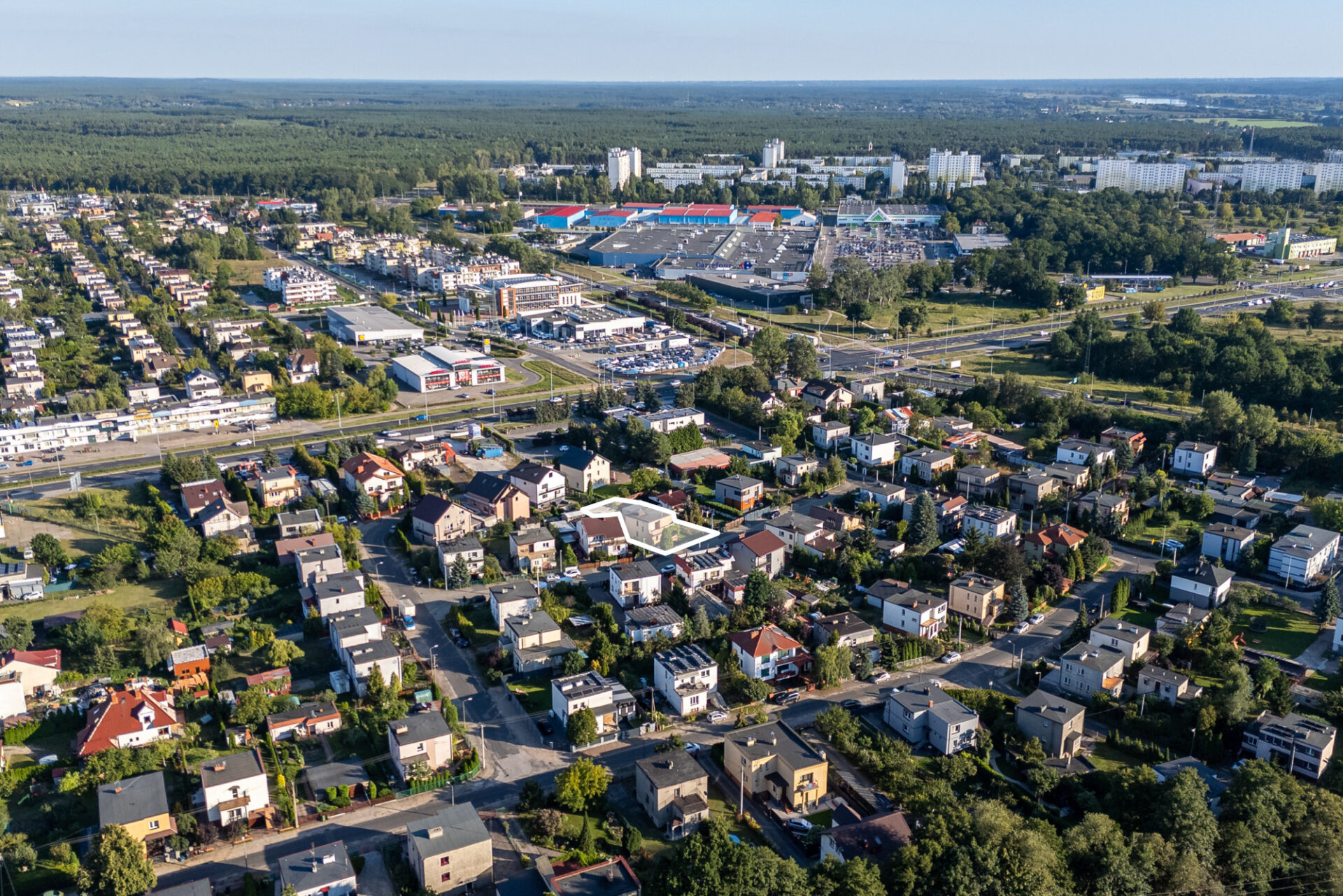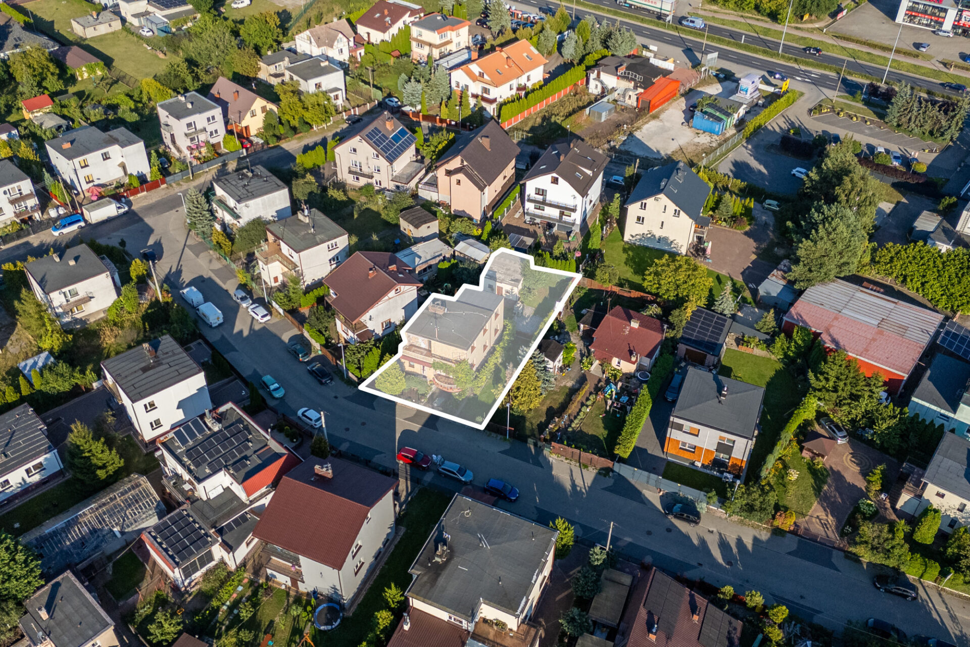 Dom położony jest w miejscu gwarantującym prywatność. Sąsiedztwo stanowią wyłącznie domy jednorodzinne, co sprawia, że ruch samochodowy w okolicy jest minimalny. Jednocześnie lokalizacja zapewnia wygodny dostęp do infrastruktury miasta. W pobliżu znajdują się sklepy, szkoły, przedszkola, przychodnie, punkty usługowe oraz przystanki komunikacji miejskiej.